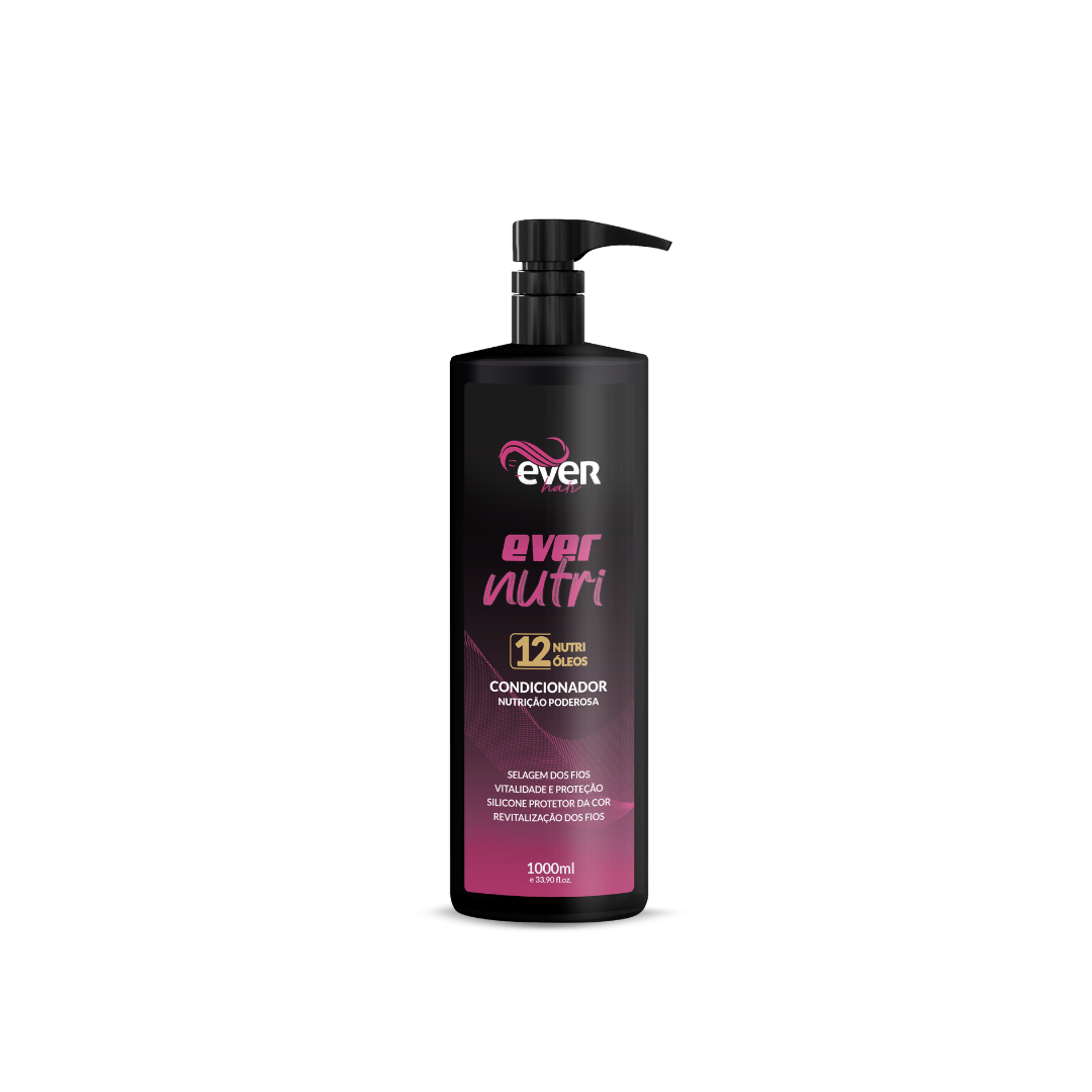 O Condicionador de Nutrição Ever Nutri, da Ever Hair, foi desenvolvido para promover uma hidratação profunda e devolver aos fios a vitalidade e o brilho natural. Sua fórmula exclusiva contém 12 óleos nutritivos cuidadosamente selecionados, que atuam de forma sinérgica para restaurar a maciez, combater o ressecamento e alinhar as cutículas capilares.